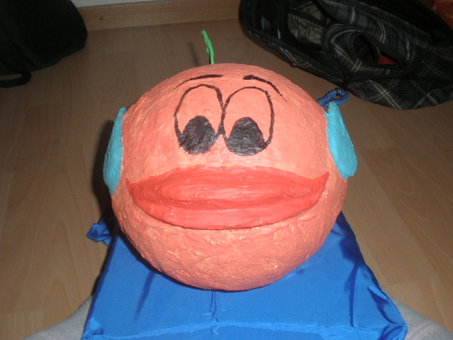 - Faîte un trou sur le poisson afin de faire une tirlire. Cela est difficile car le plâtre est solide, demandez à une personnes ayant de la force et utilisez le bon matèriel.